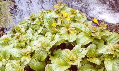 It is a garden escape. The large, broad, mint-like leaves and showy yellow flowers are distinctive.