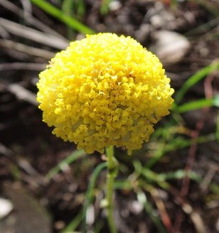 Lanky Buttons (Leptorhynchos elongatus) has more pronounced bracts at the flower base, and the buds are more conical in shape. It is rare.